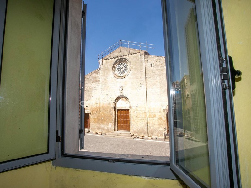 In una delle stanze, antichi affreschi decorano ancora il soffitto, testimoni silenziosi di un passato nobile e raffinato. Le finestre si affacciano tutte sulla piazza, regalando una vista incantevole sulla chiesa e sulla vita del centro storico.
