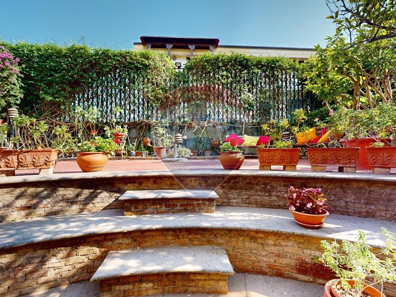 Circondata da un rigoglioso giardino alberato costituito da viali e terrazzamenti che conferiscono allintera struttura uno stile davvero unico ed elegante .