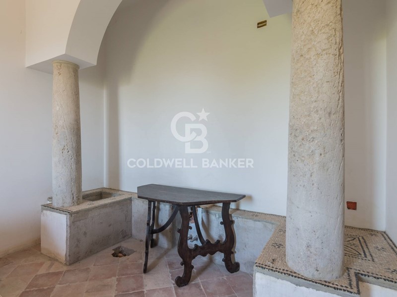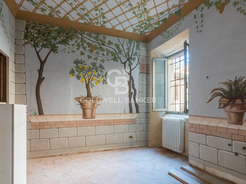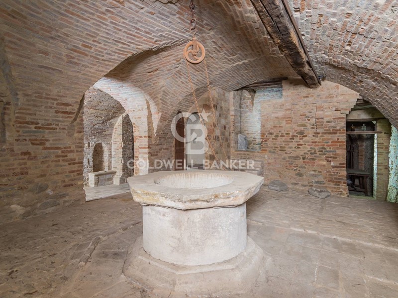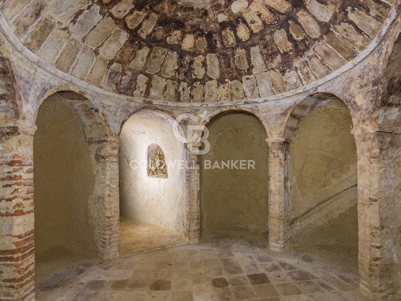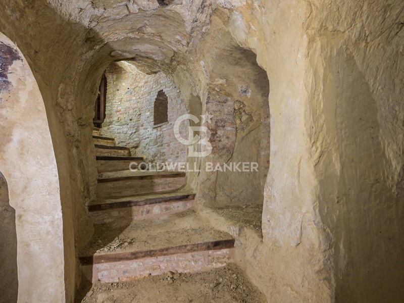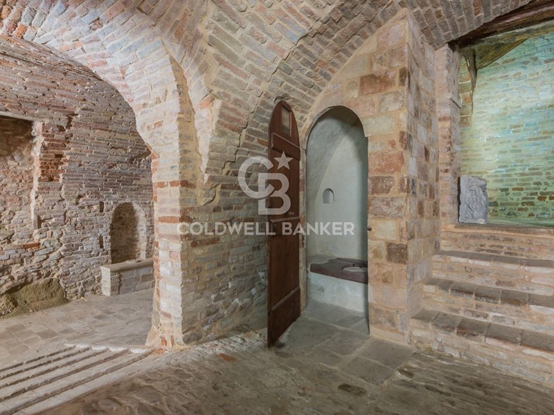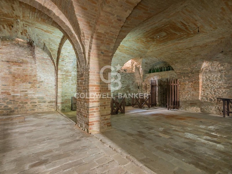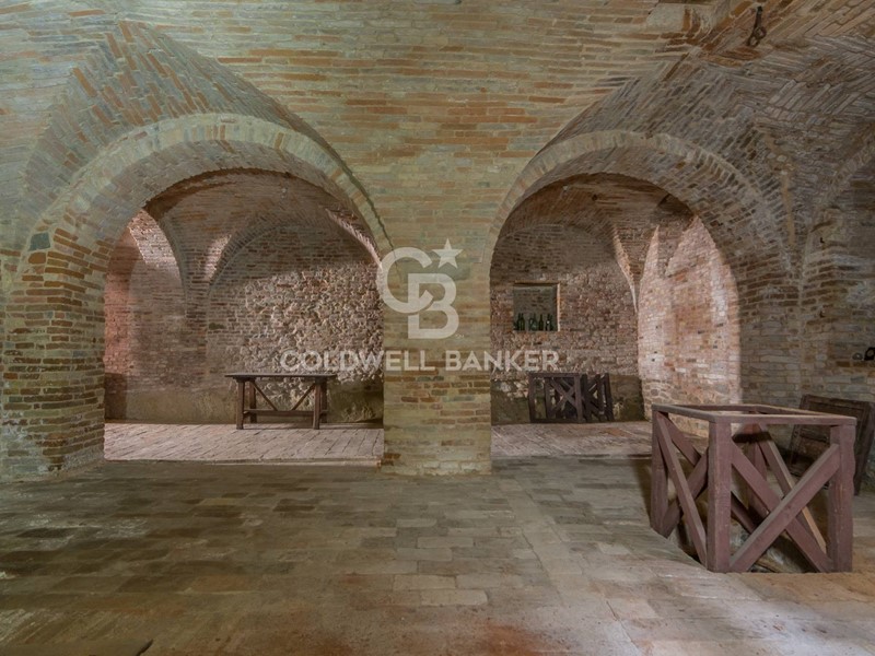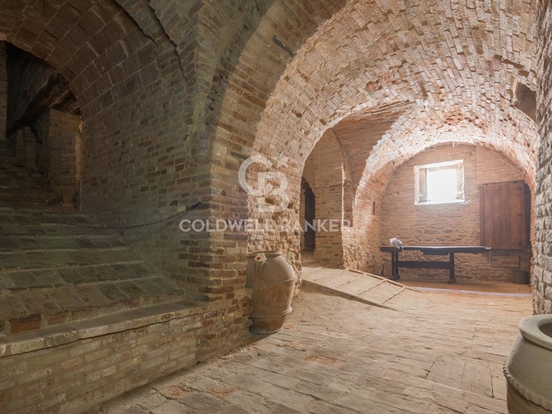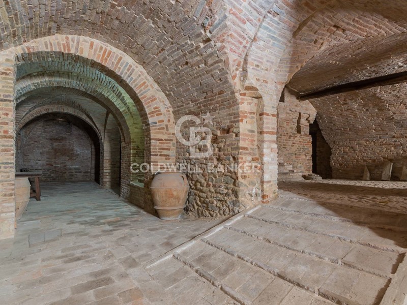 La cantina al piano seminterrato (circa 155 mq) rappresenta un vero viaggio nel tempo: utilizzata a fine Ottocento come deposito per lolio, è dotata di nicchie per tini da vino e botole a pavimento per lo stoccaggio del grano, elementi restaurati che valorizzano gli ambienti.