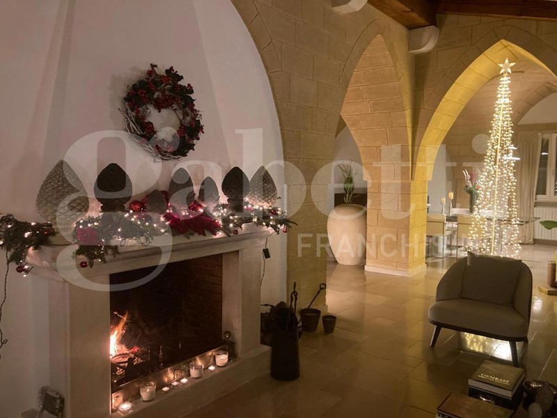 La proprietà, interamente pervasa da un'atmosfera avvolgente, si compone di elegante salone con camino, ampie vetrate con vista giardino e piscina, cucina abitabile con forno a legna, 3 camere da letto, di cui quella padronale con cabina armadio di circa 17mq, bagno con doccia e vasca idromassaggio doppia.