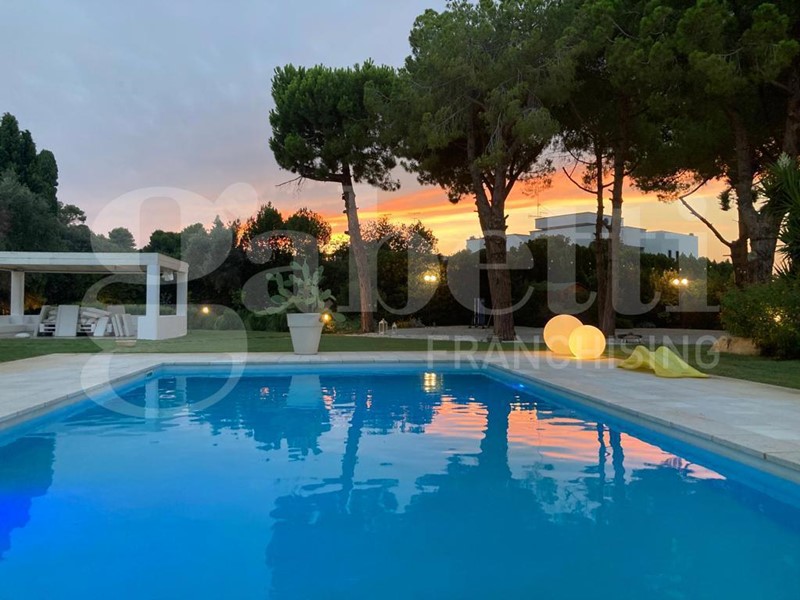 In uno dei complessi residenziali più esclusivi della città, a pochi chilometri dall'aeroporto e dalle più belle spiagge del Salento, splendida villa su tre livelli, servita da ascensore, circondata da un rigoglioso giardino di oltre 3000 mq, ove insistono ulivi secolari, pineta, agrumeto, orto biologico, una magnifica piscina di 12 metri per 7, gazebo in muratura finemente arredato, forno a legna, barbecue e altre utilità.