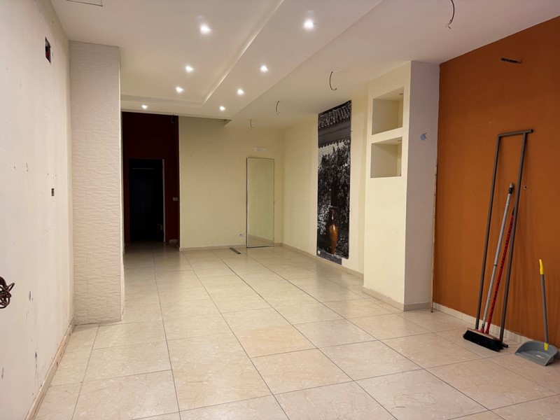 Lo spazio è diviso in un grande ambiente iniziale la cui ampia vetrina si affaccia sul largo marciapiede alberato; il retro negozio è costituito da un piccolo ambiente; i bagni sono due ed uno è per disabili; il ripostiglio è funzionale.