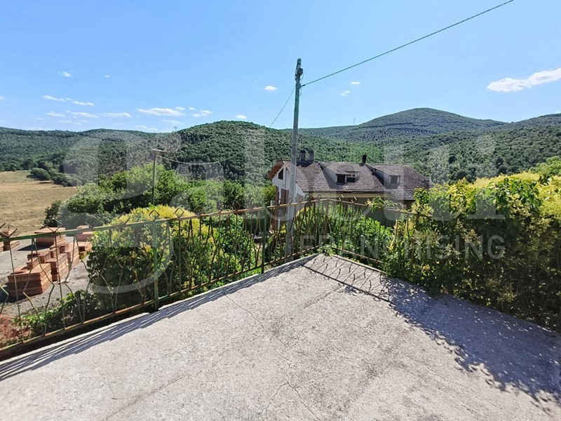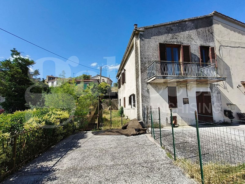 Primo piano: ampia zona giorno con cucina separata e camino, 2 camere da letto (di cui una con balcone panoramico), bagno, portico e corte esterna.