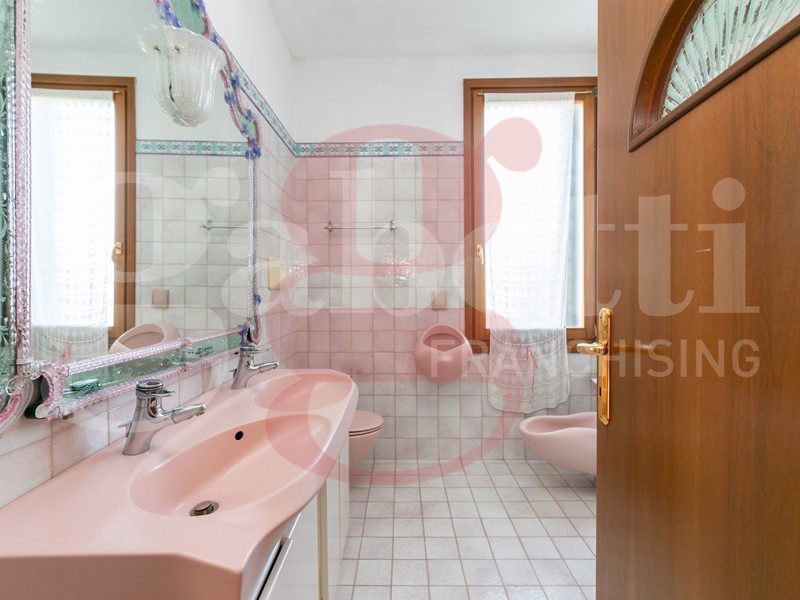 La villa è disposta in tal modo: al piano terra troviamo la zona living con la cucina abitabile, sala pranzo, soggiorno separato con camino e bagno finestrato; al primo piano la zona notte con 3 camere matrimoniali di cui una con balcone, il classico salottino veneziano centrale, il secondo bagno anch'esso finestrato e l'accesso al sottotetto dove eventualmente si potrà ricavare un terzo bagno con 2 camere o utilizzare come deposito; al piano seminterrato invece troviamo uno spazioso magazzino che può essere adibito a taverna con cantina e la sala lavanderia con servizio.