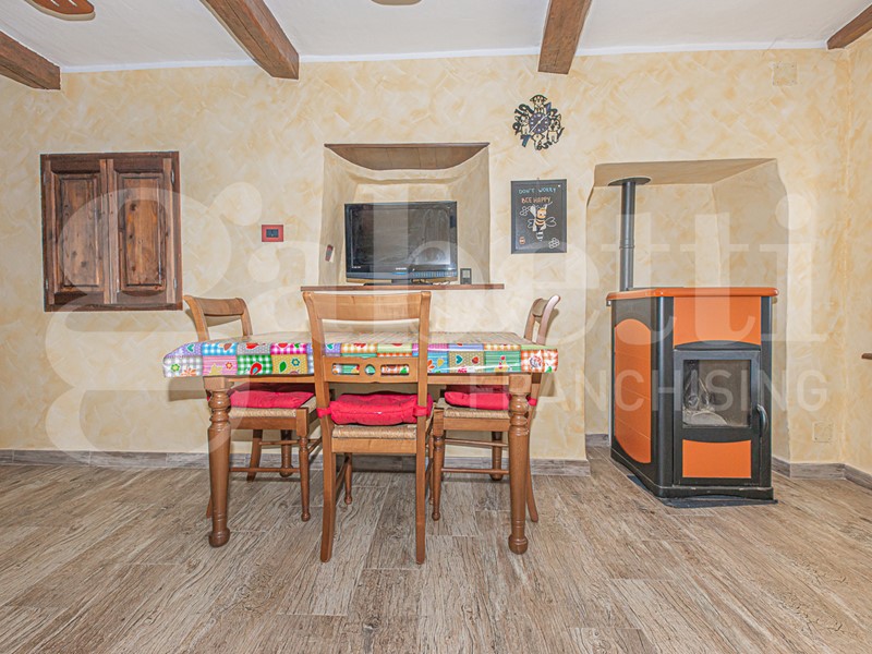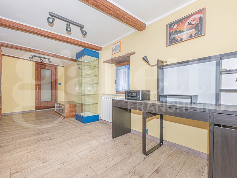 Ulteriori vantaggi includono una cantina, un ripostiglio, una ulteriore vano uso studio e il riscaldamento con stufa a pellet e il citofono e la comodità di un bar, ristoranti ,una scuola e un parcheggio. Questa casa è pronta per essere abitata e offre un'atmosfera accogliente e confortevole per chiunque desideri vivere in un ambiente tranquillo e a pochi minuti per raggiungere Giaveno. Abitabile nell'immediato.