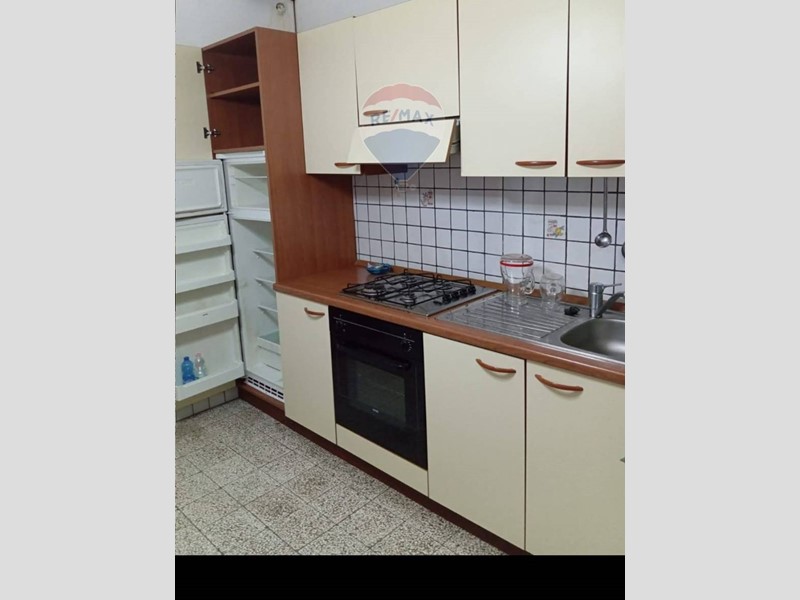 Adiacente al soggiorno troviamo la cucina, non molto grande, ma comunque abitabile, che a sua volta ci conduce nel resede di proprietà, di circa 10 mq.