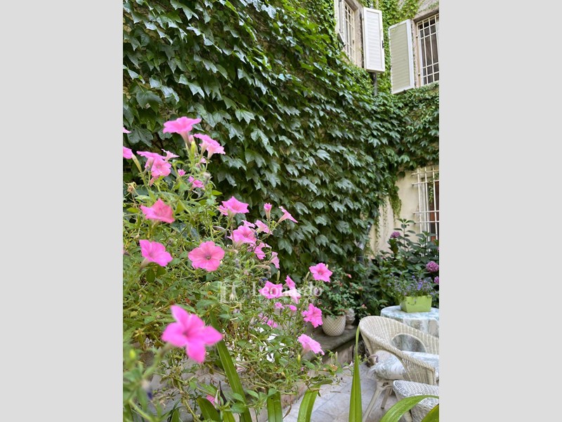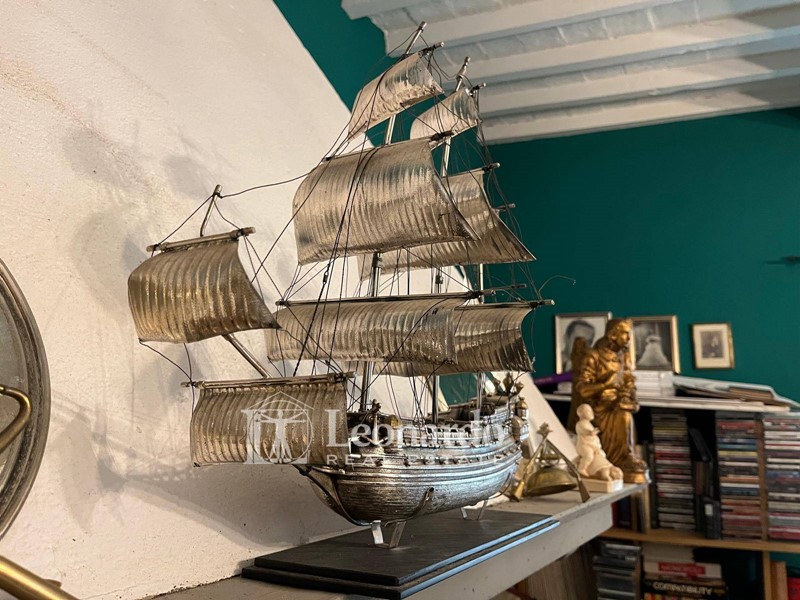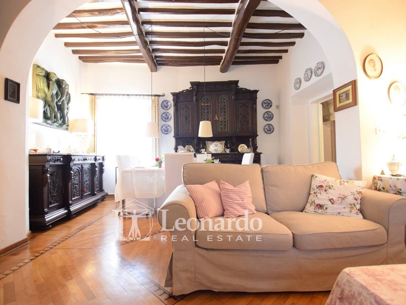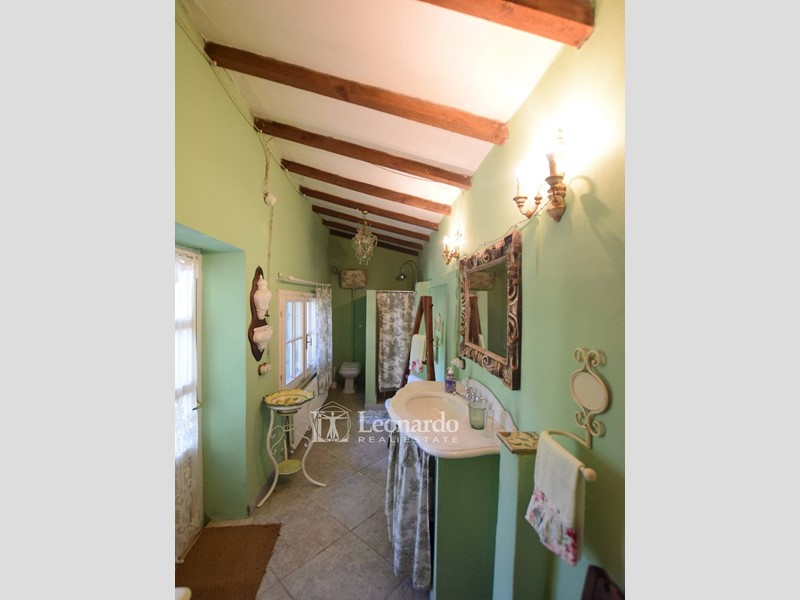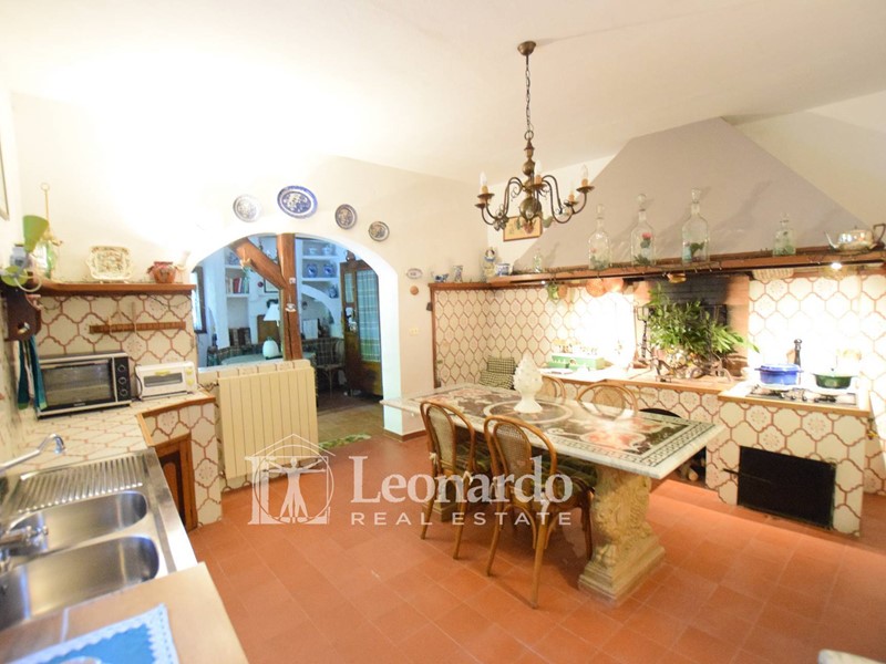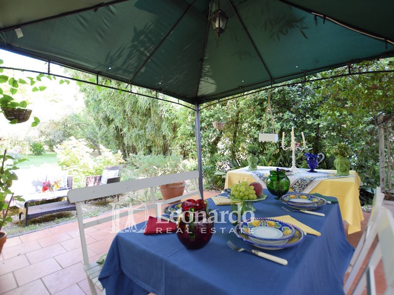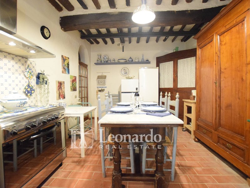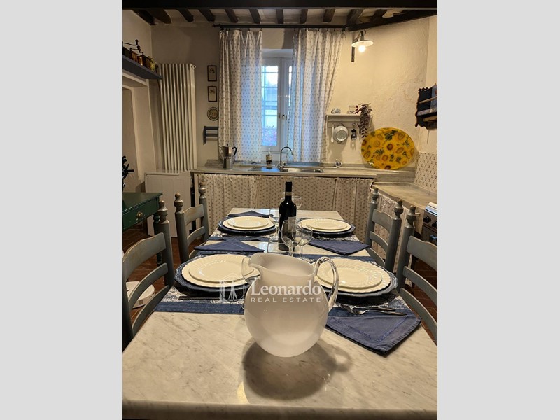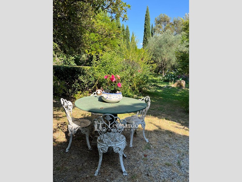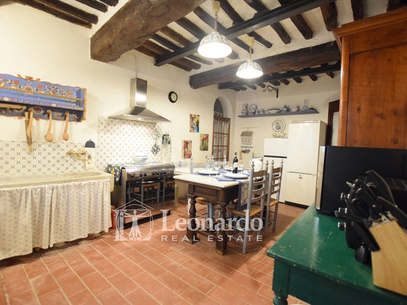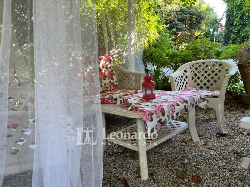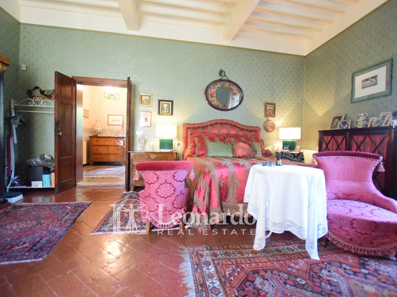 Allinterno, il piano terreno si apre con un elegante disimpegno che introduce nella zona giorno: una doppia sala da pranzo con camino in pietra grigia e pavimenti in parquet, una cucina dallanima autentica con fuochi rifiniti da piastrelle francesi, forno a legna, dispensa, seconda cucina e bagno, in un continuo gioco di livelli e prospettive tipico delle residenze depoca. Le finestre si affacciano sul giardino, inondando di luce naturale ogni ambiente.