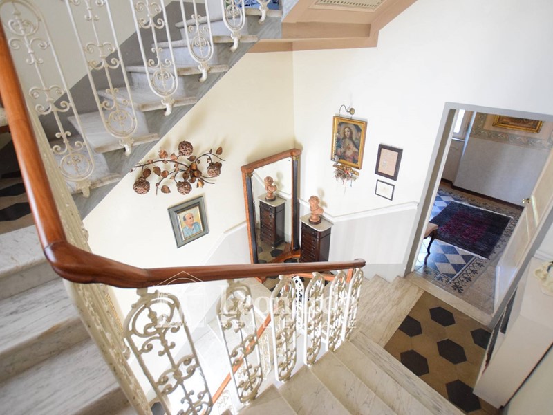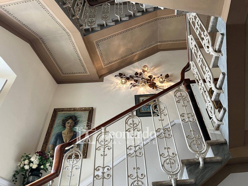 La scala padronale, con fregi originali, splendidi marmi e affreschi dei primi del '900, conduce al primo piano: qui si sviluppa la zona notte con una camera padronale di grande charme, servita da un ampio bagno, e altre due camere da letto. Gli alti soffitti, le ampie finestre e la generosità degli spazi conferiscono agli ambienti una luminosità e un respiro rari da trovare.