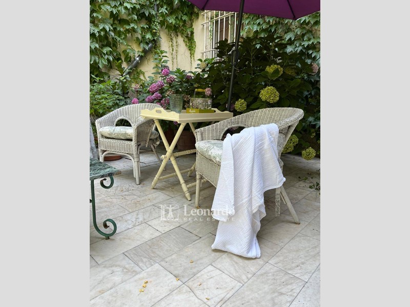 Proseguendo, troviamo un raffinato salotto con camino in marmo, che si apre su unampia terrazza: un luogo perfetto per la musica, la lettura o le serate estive. Completano il piano terra un piccolo salottino/studio e un secondo accesso allabitazione.