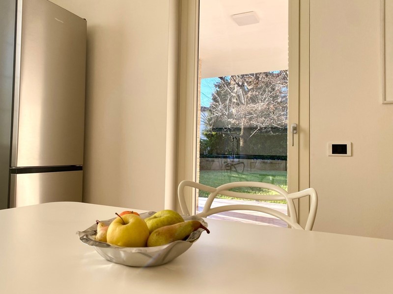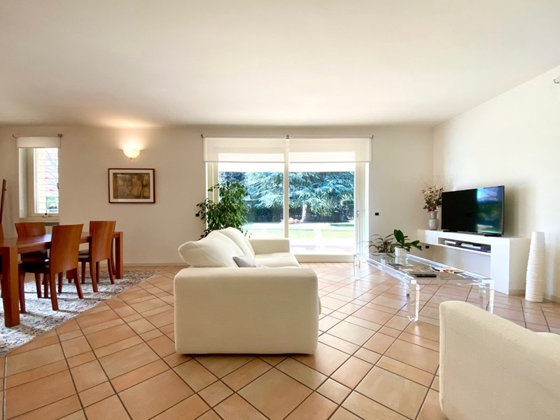 Ingresso nel luminoso soggiorno con vetrata panoramica sul giardino esclusivo, il piano terra è completato da cucina abitabile con doppio affaccio ed un bagno appena ristrutturato!