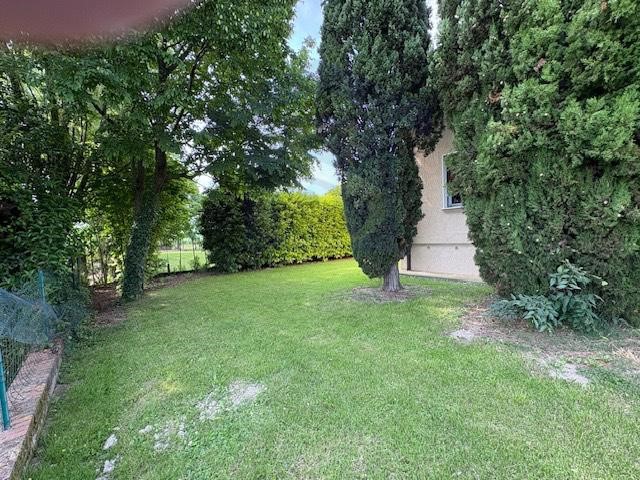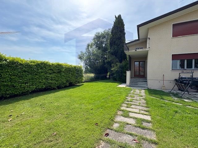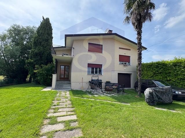 Brugnera, località Maron, luminosa villa singola disposta su unico livello con soffitta abitabile, interrato e 2300 mq. di giardino privato. Composta da ingresso, ampio salone, cucina separata, tre camere, due bagni, cantina, doppio garage e deposito. Attualmente locata a personale della base di Aviano con ottima rendita. Immobile libero da Agosto 2026.
