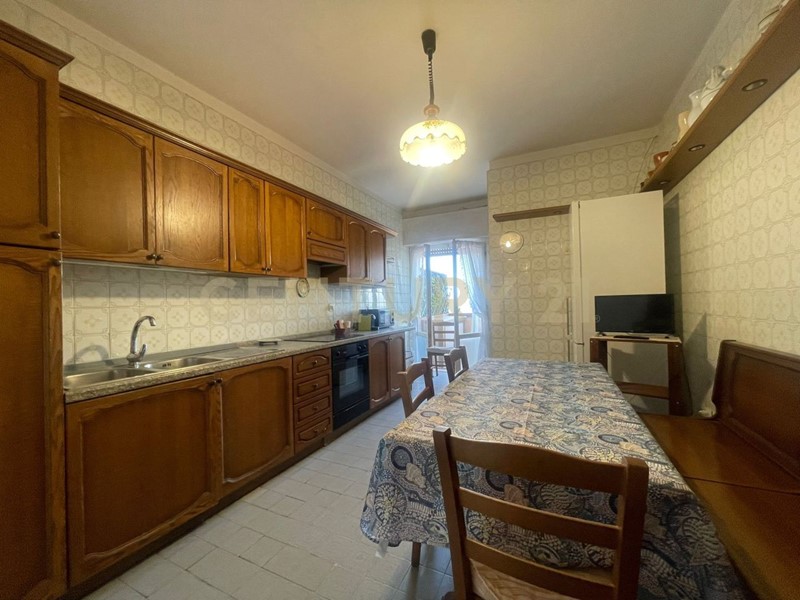 L'immobile, al secondo piano senza ascensore, è composto da cucina abitabile, ampio soggiorno, terrazzo vivibile vista mare. La zona notte è composta da due ampie camere matrimoniali, due bagni, ripostiglio con lavatrice, cameretta con due letti singoli.