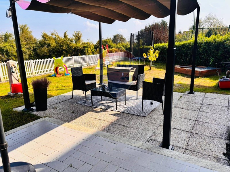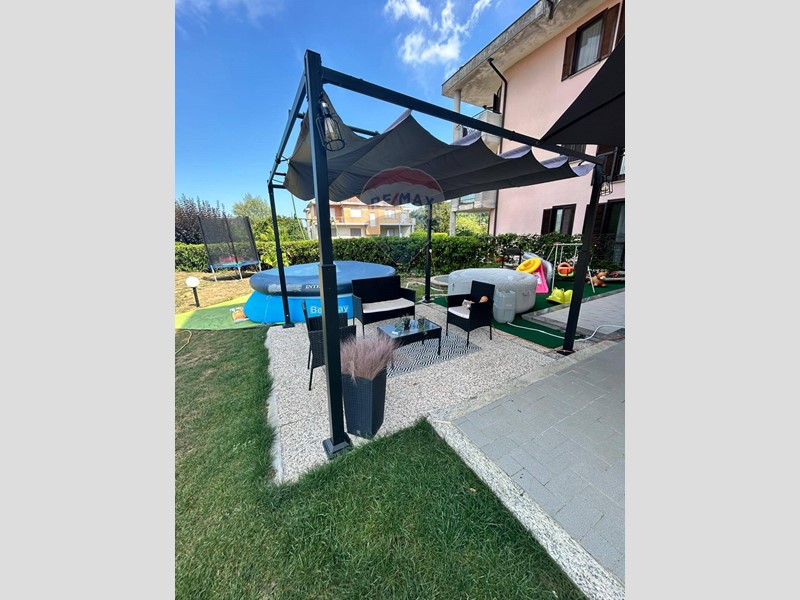 Entrando, si è accolti da un ampio e luminoso soggiorno la cucina è abitabile da entrambe le stanze si ha l'uscita sul giardino la zona notte è composta da tre spaziose camere da letto anch'esse con uscita sull'esterno, i servizi igienici sono due, tramite una scala interna si accede alla zona tavernetta ampio e ben distribuita negli spazi completa l'appartamento una lavanderia ed una cantina.