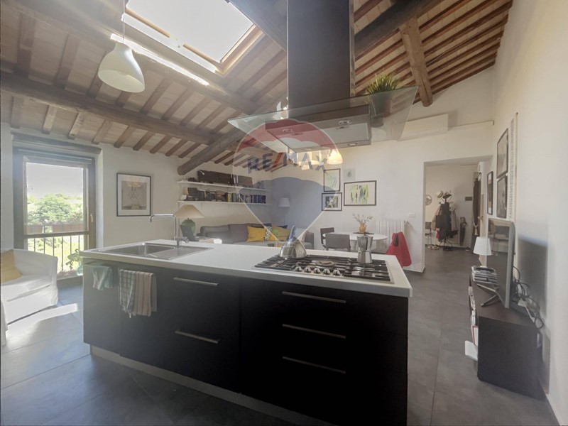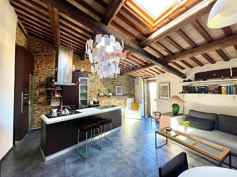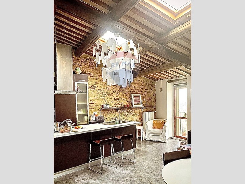 L'appartamento è attualmente composto da: Ingresso con vista su entrambe le aree, soggiorno con cucina di ottima fattura "a vista" e camino, si affaccia su un piccolo balconcino, bagno con lavanderia, grande camera da letto, corridoio (considerato anche l'altro accesso) con piccolo angolo cottura, altra camera da letto con bagno al suo interno, da qui è possibile accedere al terrazzino panoramico con vista a 360°.