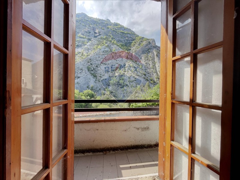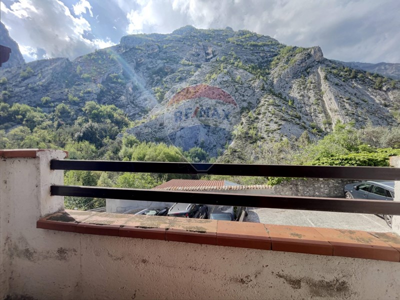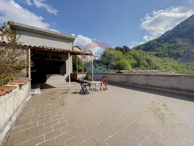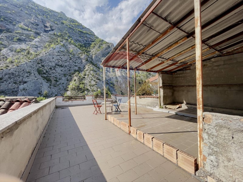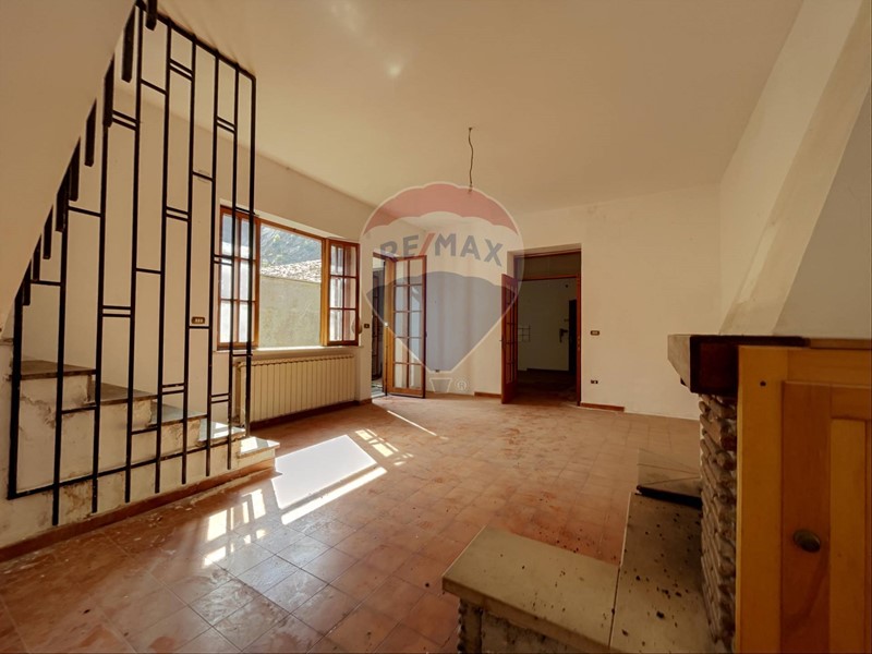 L'immobile è costituito da un fabbricato semi-indipendente "da cielo e terra", disposto su tre piani, collegati da gradinate interne, con locale garage per più auto con annessa cantina al piano terra, il piano primo ricomprende due vani collegati destinati a pranzo-soggiorno, angolo cotture con camino caratteristico; al secondo piano una camera da letto, bagno ed ampio terrazzo con affaccio su Via San Pietro e cascate delle Sorgenti.