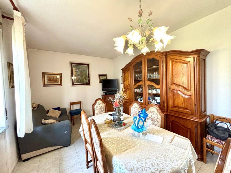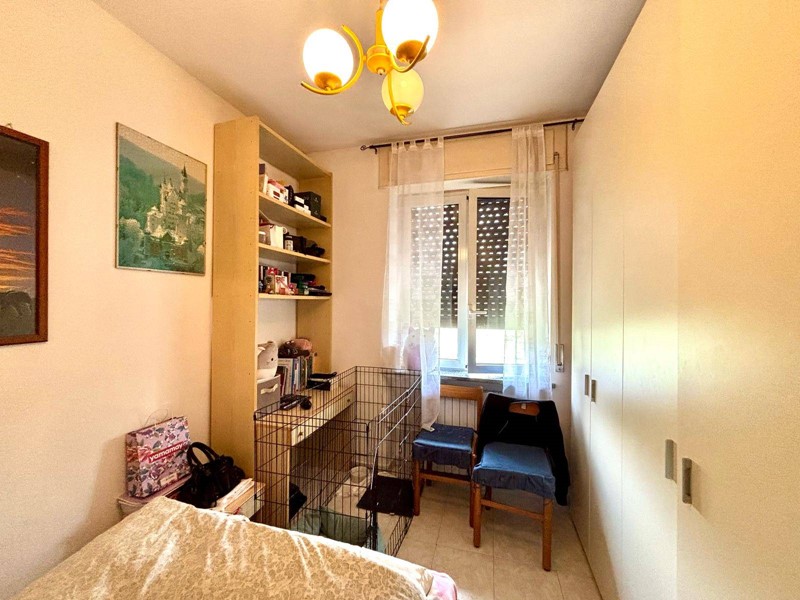 Composta da: Ingresso su ampio soggiorno con zona pranzo godibile, cucina abitabile che affaccia su un balcone ampio, 1 camera da letto matrimoniale, 2 camere da letto singole, bagno con box doccia.