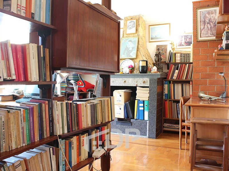 Al piano superiore si trovano tre camere da letto (una con bagno privato), un bagno comune, uno studio con camino affacciato sul terrazzo e balcone, oltre a un ripostiglio.