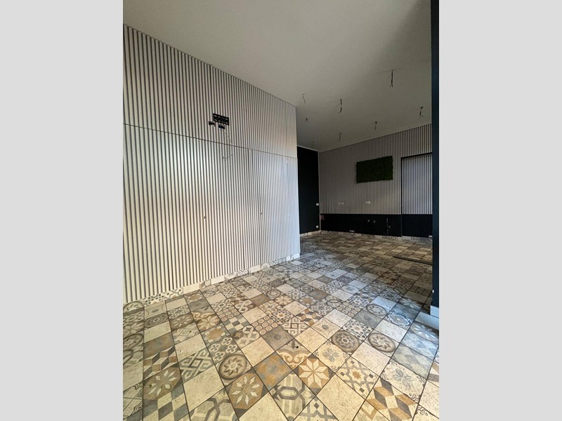 Composto da due ambienti unificati, il locale dispone di un bagno con antibagno e ripostiglio attiguo. La vetrina, affiancata da due bacheche, funge anche da ingresso si affaccia direttamente sulla strada, garantendo un'ottima visibilità.
