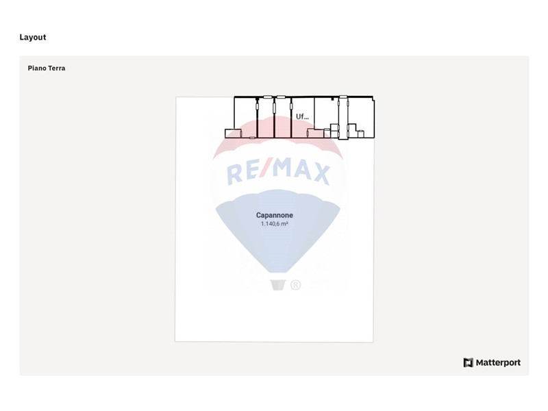 🔹 Piano terra: Capannone con uffici, spogliatoi, bagni e archivio