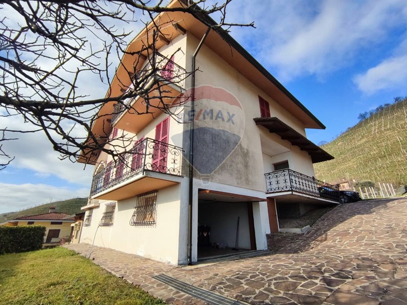 Ai piedi delle Colline del Prosecco, proponiamo in esclusiva una rara opportunità: casa singola su tre livelli, già suddivisa in due appartamenti indipendenti, con giardino privato di ca. 900 mq.
