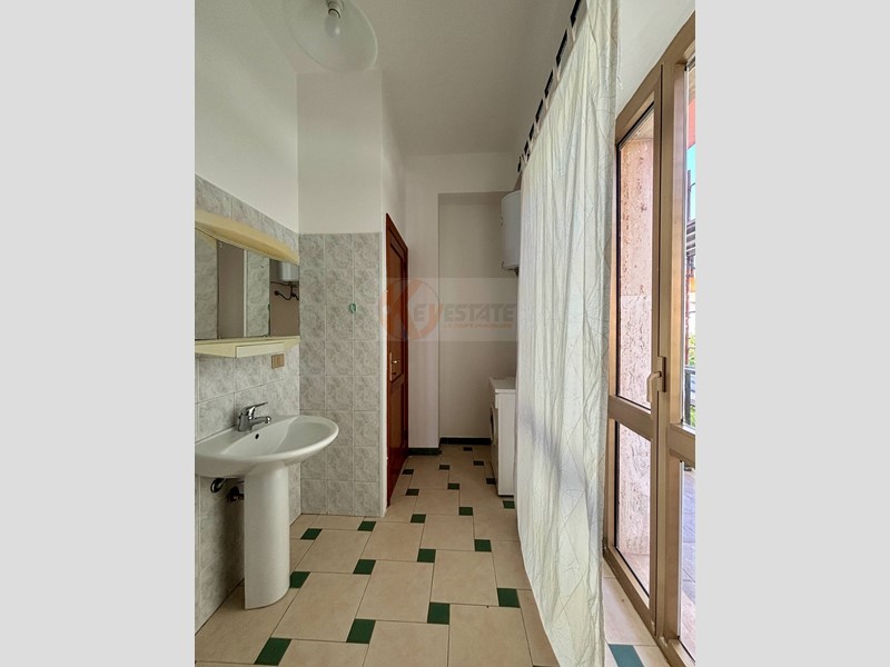 Lunità di 54 mq offre un disimpegno dingresso, soggiorno con angolo cottura, camera con scorcio di vista mare e bagno finestrato. Anche qui è presente un comodo terrazzino.