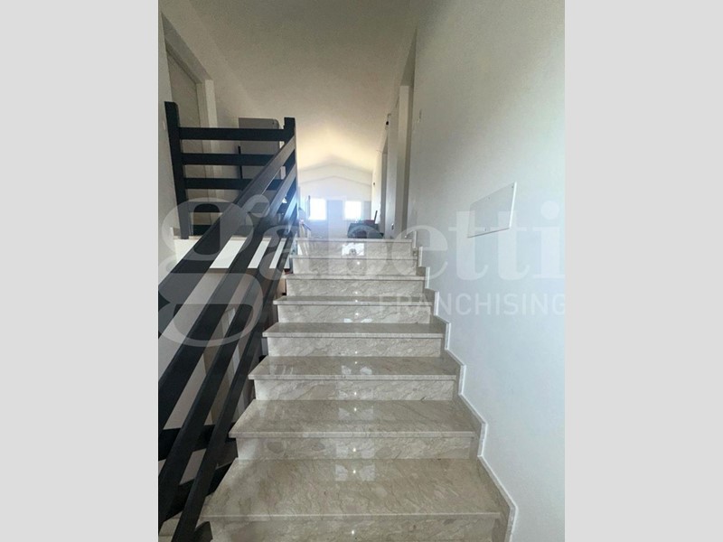 Salendo al primo piano dal vano scala in MARMO BOTTICINO, vi sono altri Quattro Bilocali di 38 mq ciascuno e di ugual distribuzione interna del piano terra.