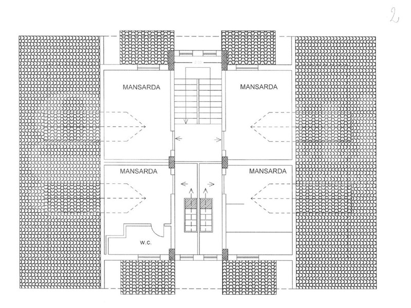 Infine al secondo piano vi sono Quattro mansarde di 30 mq circa composte da un unico ambiente ed un bagno con doccia e finestra.