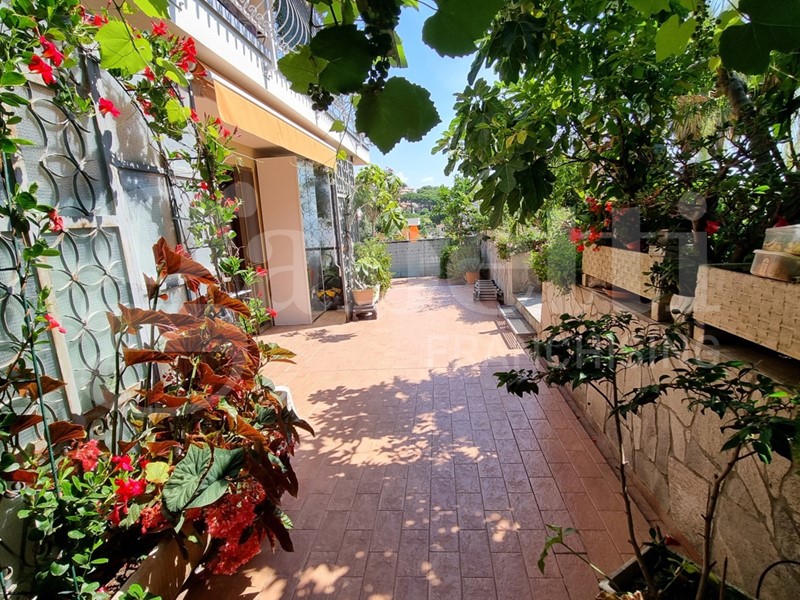 In contesto residenziale molto tranquillo e ricco di aree verdi, a circa 1 km. dal mare, proponiamo in vendita un quadrilocale semi indipendente, completamente ristrutturato, arricchito da ampio terrazzo e giardino con vista mare, sito al piano primo di una graziosa palazzina di tre piani di soli nove unità immobiliari. La proprietà, alla quale si può accedere tramite ben tre ingressi, è composta da un signorile pentavani semi indipendente della superficie lorda di 137 mq. corredato da 200 mq. di terrazzo e 500 mq di giardino recintato arricchito da prato verde, splendidi fiori, palme, alberi da frutta e prezioso orticello dove è possibile coltivare la "passione dell'orto, munito di ripostiglio per deporre gli attrezzi. L'accesso all'appartamento avviene sull'ingresso che si apre sull'ampio soggiorno e la cucina abitabile arredata in modo signorile e funzionale; entrambi i vani si immettono tramite porta finestra sull'ampia corte esterna. Si prosegue poi su un corridoio che ci accompagna alla zona notte composta da tre camere da letto matrimoniali, di cui due hanno accesso diretto sulla grande corte esterna, e due locali bagno finestrati; un bagno principale dotato di cabina doccia e un bagno di servizio munito di vasca. Quasi tutti i vani dell'immobile si affacciano sulla considerevole corte esterna che rappresenta sicuramente uno dei punti di forza di questo appartamento con vista mare; l'ampia metratura dello spazio esterno lo rende un ambiente totalmente vivibile per quasi tutto l'anno in considerazione del mite clima che caratterizza la zona; lo spazioso terrazzo è ideale per trascorrervi ore in perfetto relax godendo l'aria salubre e il radioso sole della famosa città di Sanremo. Completano la proprietà una cantina e un posto auto coperto per autovetture di piccole dimensioni, che libera dallo stress di trovare un parcheggio, entrambi compresi nel prezzo di vendita. La proposta è adatta ad una spaziosa prima casa nel quartiere La Foce, zona ricca di servizi situata vicino al centro e al litorale, a 800 metri dal "Tennis and Bridge Club", a 300 metri dalla Pista Ciclabile Area 24, a circa 2 km. dallo svincolo autostradale di uscita ed entrata - Autostrada A 10. Per maggiori informazioni e per la visita di questa interessante proposta immobiliare si prega contattare il Geometra Domenico Borla al 347/2628618 0184/990791