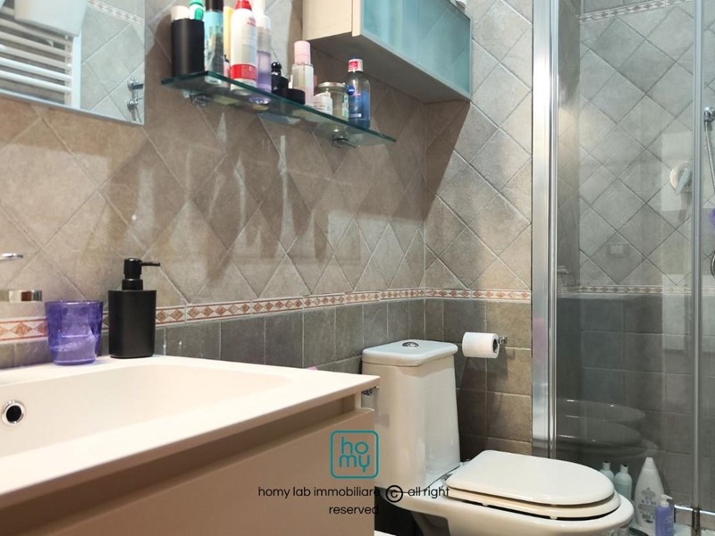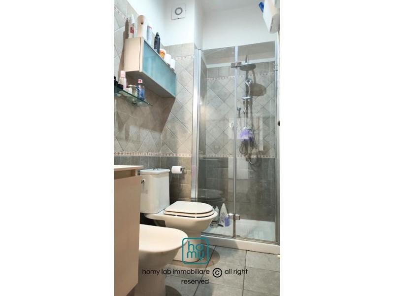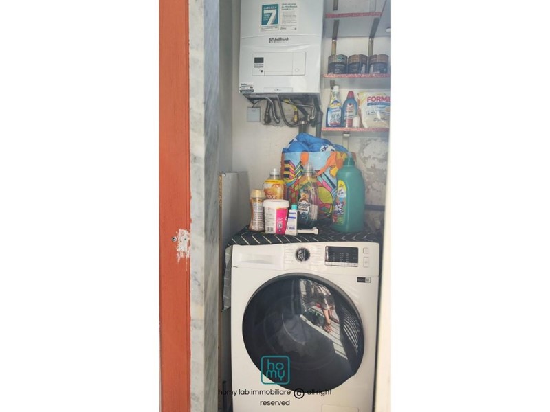 Bagno dotato di box doccia e pratico vano lavanderia.