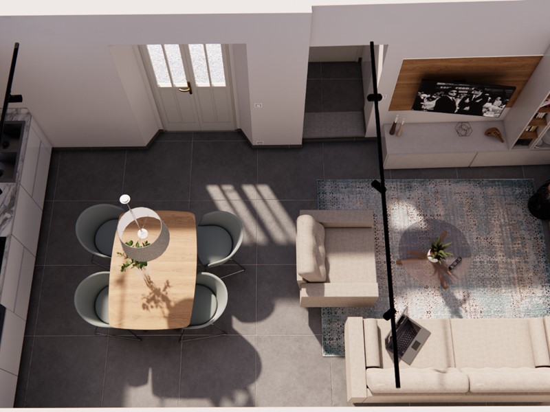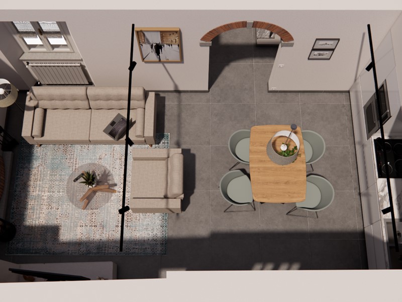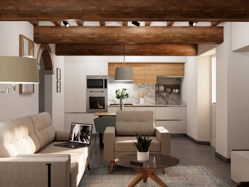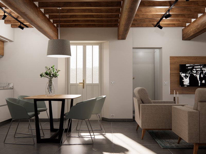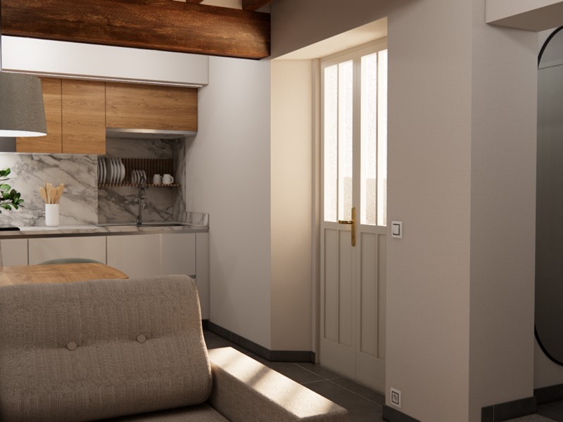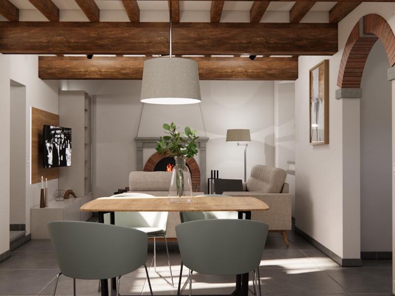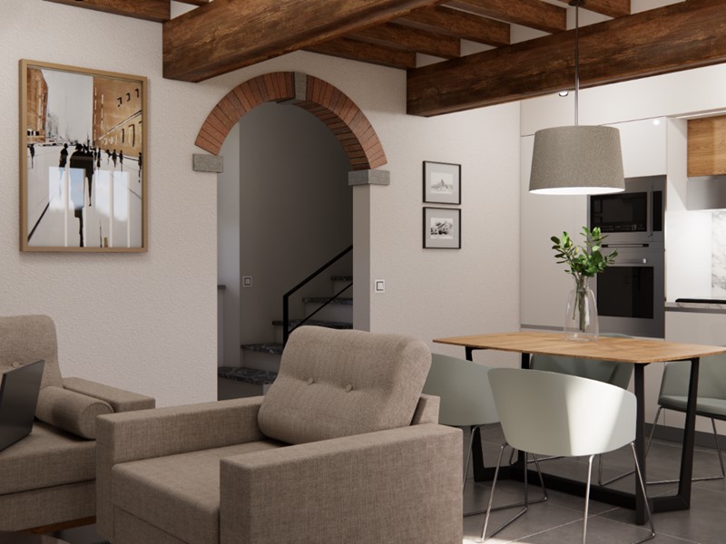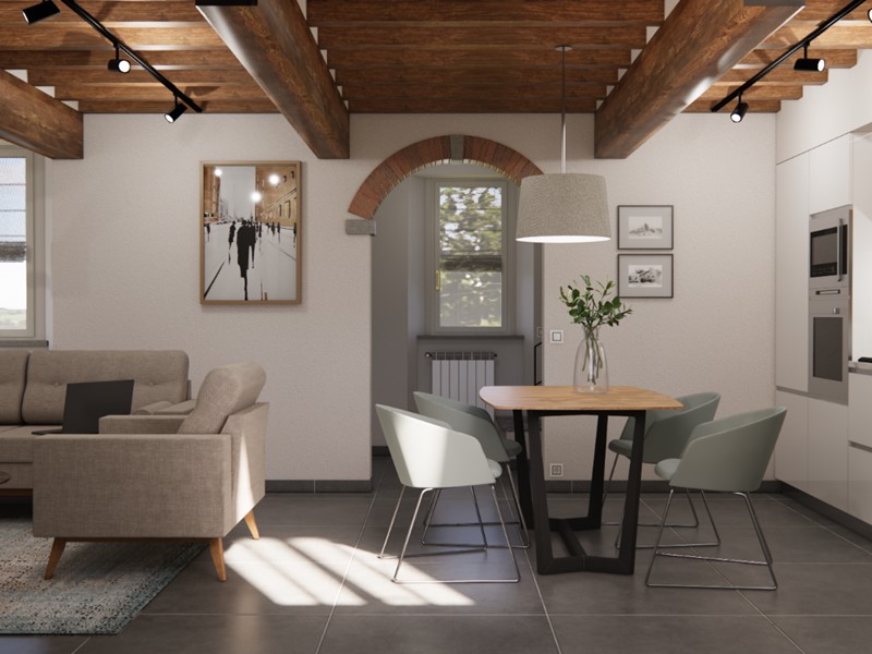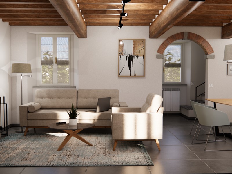 L’immobile sarà venduto completamente ristrutturato, secondo il progetto visibile nel rendering allegato (a puro scopo illustrativo). La casa verrà venduta priva di arredi.