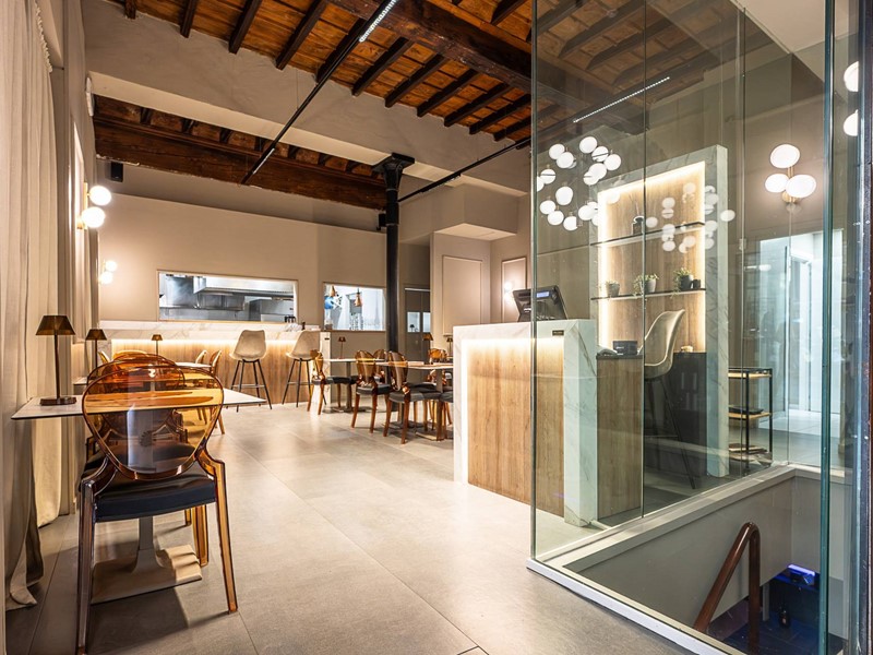 Nel cuore del centro storico di Torino, allinizio di Via Bellezia, locale commerciale di forte impatto, inserito in una delle aree più vive della città, tra ristoranti e locali sempre affollati. Limmobile, oggi ristorante, si sviluppa su due livelli piano strada e piano seminterrato entrambi autorizzati per la somministrazione. È stato recentemente ristrutturato con interventi radicali che ne hanno esaltato il carattere, trasformandolo in uno spazio elegante e curato.