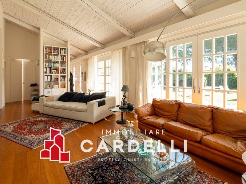A separate living quarter is approached from the internal staircase as well as an external. This includes a large living area and open space kitchen/ dining, 3 bedrooms and 2 bathrooms. A very attractive windowed dependence offers further living accommodation with two double bedrooms and 2 bathrooms. The living space is fully open plan, with many attractive architectural details, a heaven of peace in the park and lots of sunlight. To complete the estate there is an Olympic size swimming pool, and various garages and a well landscaped park of 1.2 hectares. The beach of Civitanova Marche is just a few min. away the airport of Ancona just 30 min.