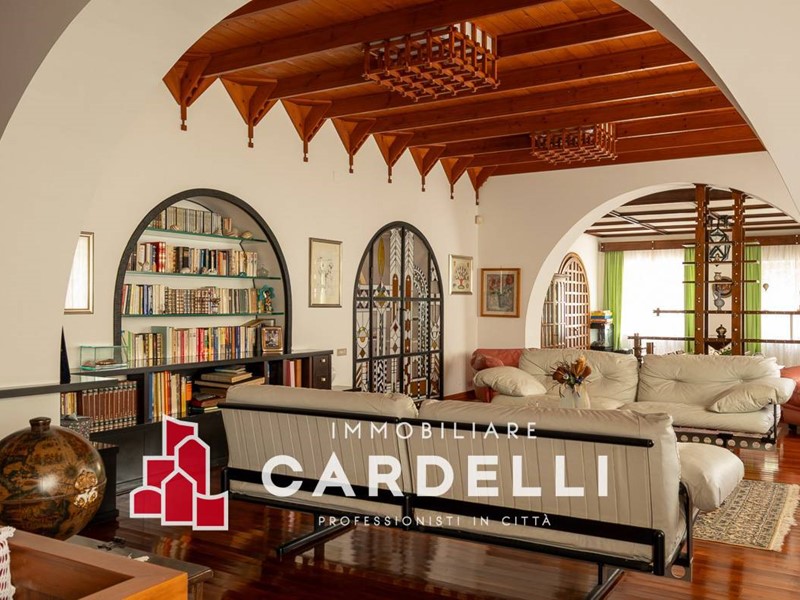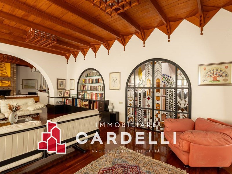Prestigious property once belonging to Napoleons the III family situated in Civitanova Marche. This outstanding villa is set in the highest point of this well-known port and seaside resort. The villa was at service of the main palazzo nearby dominating the hill and the surrounding land owned by Napoleon III's wife Eugenia. Totally refurbished by a very talented and renowned architect Luigi Serafini, has numerous details totally unique in a Liberty inspiration style. His exquisite design and details can be seen in the internal photos of the property that range from bookshelf to wood panelling ceiling with geometric capitals, light fittings, fireplace and many others.