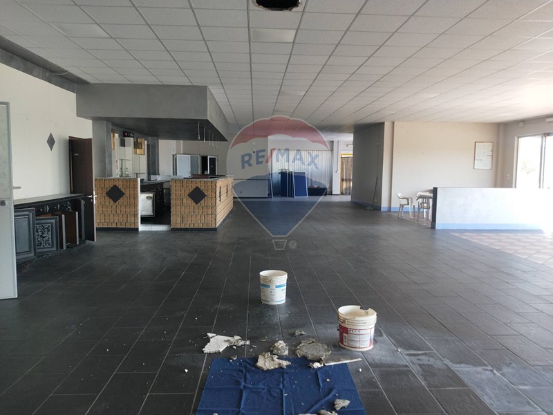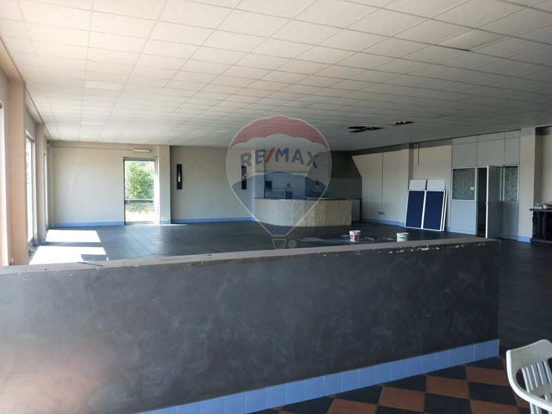 EX RISTORANTE di circa mq. 445 con h.3,40 mt.: un locale al piano terra con sette vetrine , area bancone bar , area con il forno per la pizza, cucina , corridoio, due ripostigli, un deposito e due disimpegni per il wc signore/disabili e il wc signori.