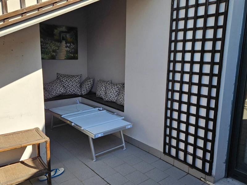 440.000 ATTICO E SUPERATTICO. Fano, in tranquilla zona residenziale, a pochi minuti dal Centro Storico e da tutti i servizi, vendiamo APPARTAMENTO DUPLEX ubicato al piano attico e superattico di una signorile palazzina di 5 piani. L'immobile, con splendida vista panoramica che spazia dalle ordinate colline fanesi da un lato all'azzurro intenso del mare dall'altro, ha ampi spazi funzionali, ben tenuti ed ottimamente rifiniti, si compone di: grande sala con terrazzo vista colline, piccolo studio d'ingresso, cucina abitabile con terrazzino, 2 ampie camere matrimoniali di cui una con comodo terrazzo vista mare, grande bagno principale con vasca idromassaggio con finestra vista mare e 2°bagno con doccia al 4° piano; 4 locali al piano superiore ad uso soggiorno/area relax, cucina, camera e bagno-lavanderia, 2 terrazzi vivibili con splendida vista mare e colline. Garage doppio pavimentato completo di impianto idrico. Parquet zona notte. Tapparelle in PVC elettriche. Interruttori con potenziometro per regolare l'intensità della luce. Riscaldamento autonomo. Classe energetica in fase di realizzo. Rif.: V/1406