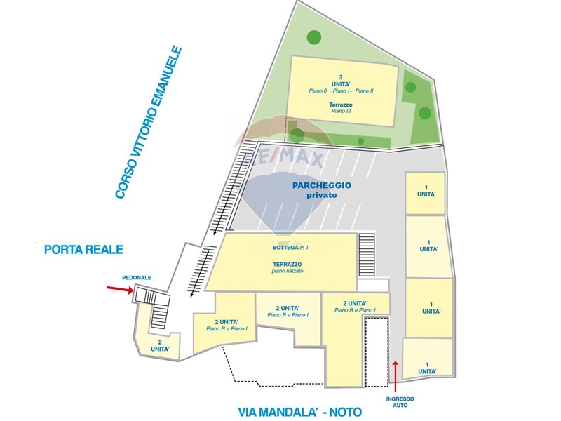 - Accessi: ingresso pedonale e carrabile