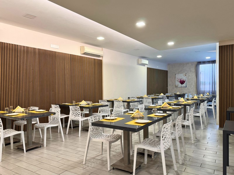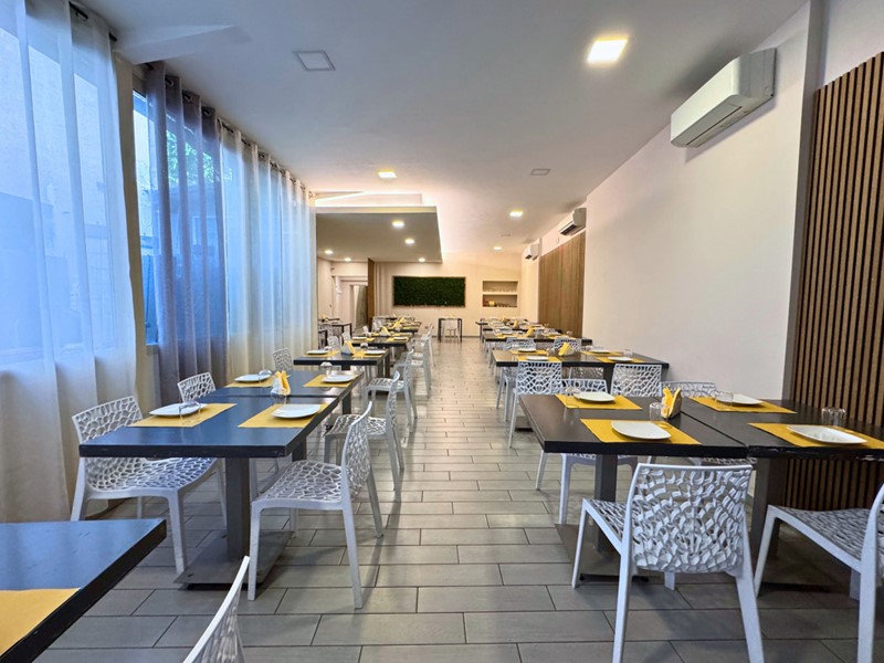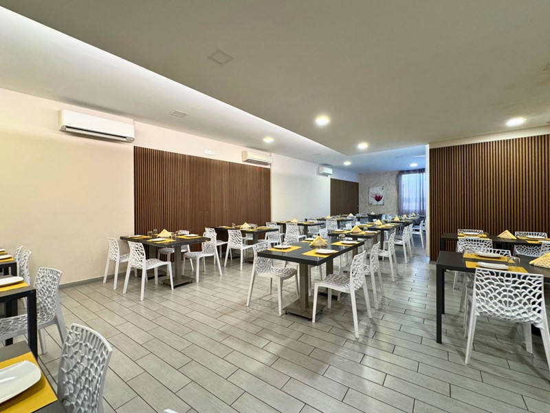 Il locale si sviluppa su una superficie ampia e accogliente, che ospita circa 160 posti a sedere, e dispone di due sale interne climatizzate (una spaziosa, l'altra più raccolta), mentre all'esterno, il dehors attrezzato è il fiore all'occhiello: coperture, stufe e un'atmosfera curata permettono di lavorare tutto l'anno, con grande comfort.
