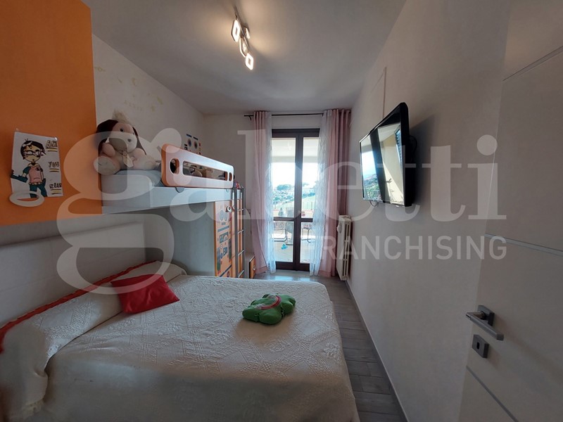 La zona notte è composta da una camera matrimoniale, una cameretta e due bagni, di cui uno finestrato con doccia e l'altro solo servizi cieco. Un valore aggiunto è il grande terrazzo abitabile esposto a Sud/Ovest, che regala una vista panoramica mozzafiato e rappresenta il luogo ideale per cene all'aperto o momenti di svago.