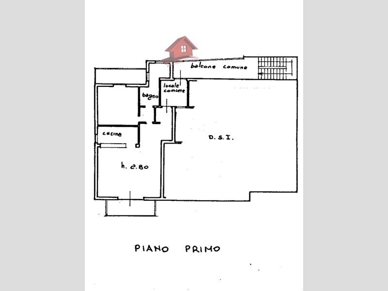 Primo Piano sono collocati due appartamenti con accesso dal balcone comune e zona ingresso condivisa