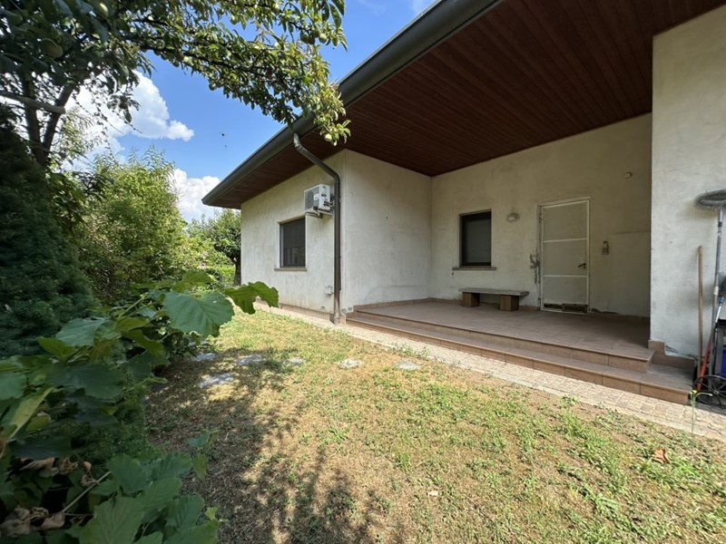 Posta in zona semicentrale, comodissima per il centro, la stazione, le scuole ecc, villa singola dei primi anni '90 di grande metratura distribuita su unico livello. L'abitazione di ben 235 mq si compone da ingresso, soggiorno con camino, sala da pranzo, cucina abitabile, cinque camere di cui una padronale con bagno e cabina armadio, oltre lavanderia, ulteriori due bagni, un locale armadi e ripostiglio. La casa di presenta in buono stato di manutenzione, rifinita con pavimentazione in ceramica nella zona living, parquet nella zona notte, serramenti in legno doppio vetro, zanzariere e tapparelle in alluminio coibentato motorizzate. La villa è inoltre dotata di allarme perimetrale sulle finestre, caldaia a condensazione installata nel 2008, tre termostati per gestire altrettante zone della casa e caloriferi con termovalvole. Box esterno con basculante motorizzata. Giardino distribuito su tre lati della proprietà di 330 mq c.a. Immobile libero subito. - Maggiori Dettagli: Climatizzato, Porta blindata, Cucina Abitabile, Sistema di allarme