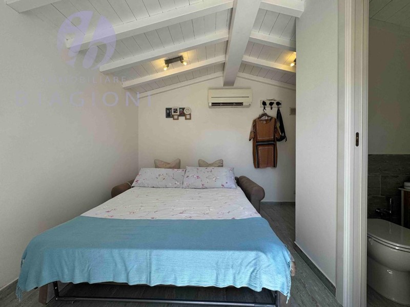 L'immobile si divide in porzione principale, composta da cucina soggiorno con divano letto e porta finestra che affaccia sulla resede di proprietà esclusiva , bagno con doccia, camera matrimoniale. In giardino manufatto con all'interno camera matrimoniale con bagno. Prezzo: 420.000 Euro.