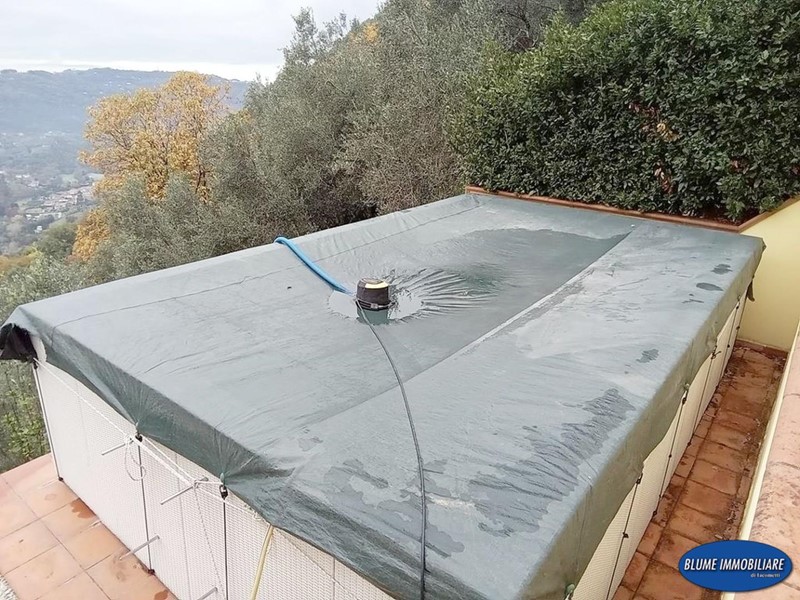In vendita in Comune di Camaiore, Frazione Torcigliano, zona collinare a circa 400 metri sul livello del mare, con vista panoramica, bella villa singola di recente ristrutturazione, condizioni ottime, corredata di terreno sui quattro lati, in parte ad uliveto, di circa mq. 3.000. Comodo spazio per parcheggio auto ed ampio garage. Si compone a piano terra di una saletta d'ingresso con caminetto e vano scale per accesso al piano primo, attiguo soggiorno/pranzo, che occupa tutto il fronte, molto luminoso, corredato di due finestre ed una porta-finestra che accede al giardino, attigua cucina abitabile con accesso al porticato, perfetto per pranzi e cene, un bagno con doccia e finestra, oltre a vano caldaia con accesso esterno. Al piano primo di compone di un disimpegno, due camere matrimoniali, una camera media ed una comoda saletta da bagno con vasca idromassaggio e doccia. Sul lato della villa che guarda verso il mare, è stata realizzata una piscina fuori terra con una comoda terrazza sul fronte.