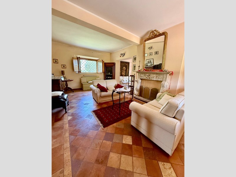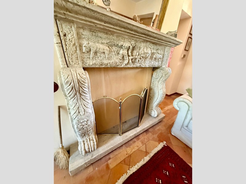 La casa, si estende su una superficie totale di 265 metri quadrati, dislocata su due livelli, spazi interni sono generosi e ben distribuiti, con un totale di 10 locali tra cui 4 camere da letto e 3 bagni, perfetti per accogliere una famiglia numerosa o per ospitare amici e parenti. Al piano terra, cucina abitabile, soggiorno e sala relax entrambi muniti di caratteristici e pittoreschi camini con facciata in travertino.