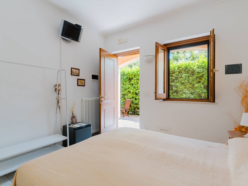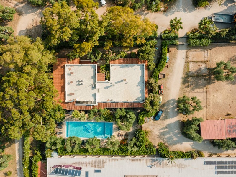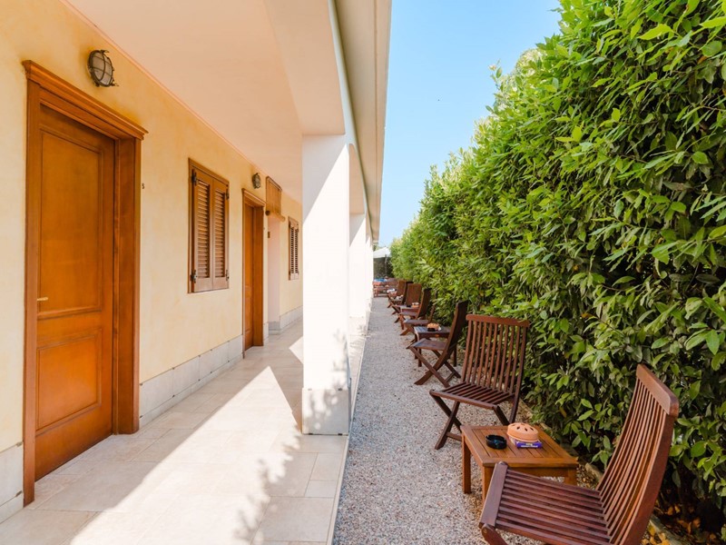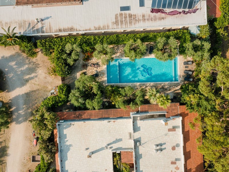 Larea dedicata allospitalità si sviluppa su 445 mq, con camere eleganti e ben rifinite dotate di climatizzazione centralizzata, bagno privato, TV LCD, cassaforte e frigobar. Il porticato introduce alla piscina panoramica di 6x16 metri rifinita in mosaico Bisazza e dotata di impianto a sale marino, con area idromassaggio, cascata verticale e zona giochi per bambini, creando unesperienza di soggiorno raffinata e rilassante.