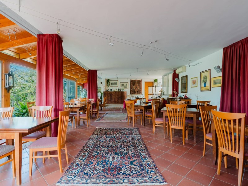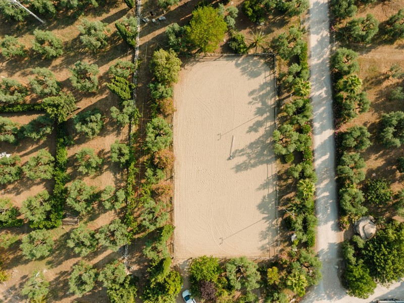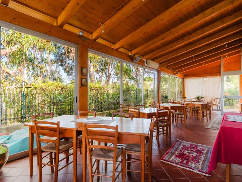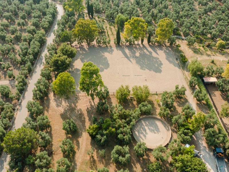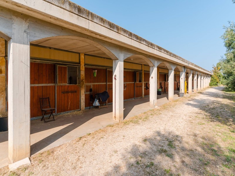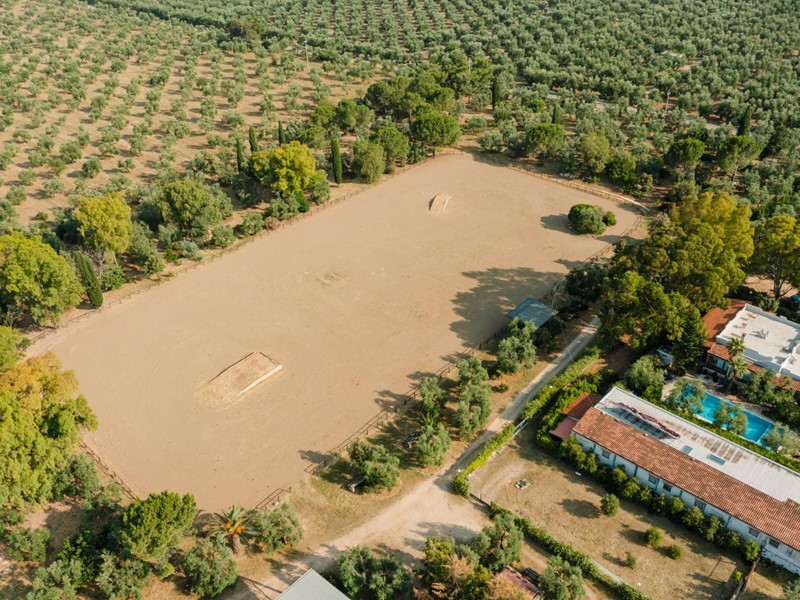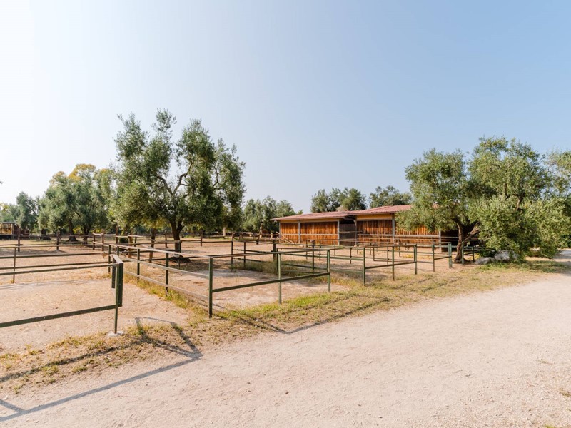 Il ristorante, ampio 427 mq, ospita due sale principali, una saletta TV, cucine professionali, due camere indipendenti e un ufficio operativo. Completano la parte funzionale una lavanderia di 48 mq, scuderie con 38 box equestri, campi da equitazione in sabbia, selleria, spogliatoi, un maneggio coperto da 1.100 mq con impianto a pioggia e una masseria didattica di 190 mq, ideali per attività didattiche ed esperienziali legate al territorio.