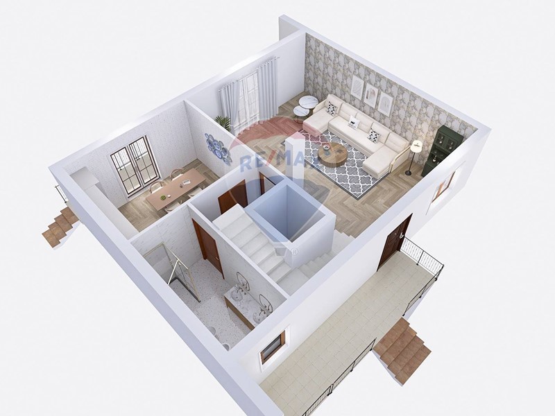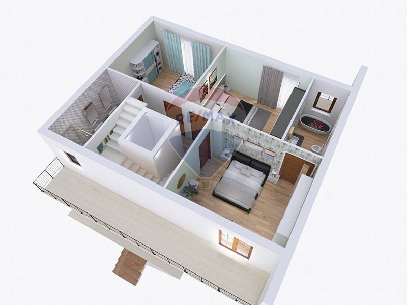 servita sui due lati da un bel giardino pavimentato privato e da ampie balconate da cui si può godere di una piacevole vista con possibilità di godersi momenti di relax e di svago all'aperto .