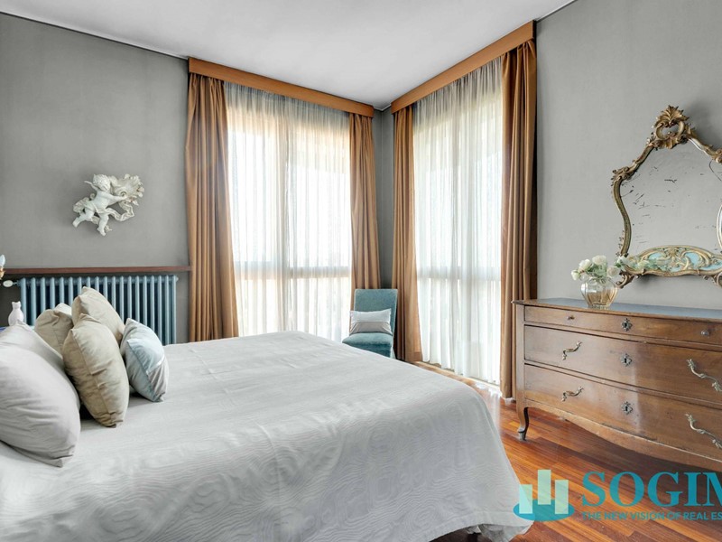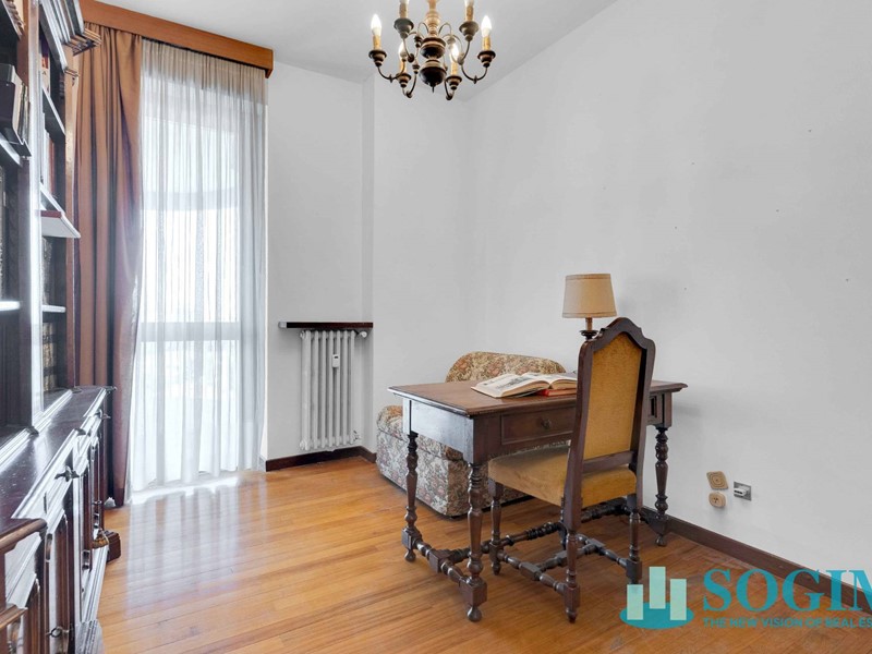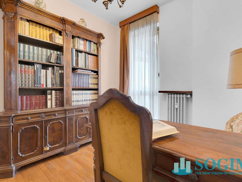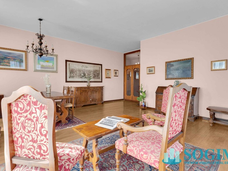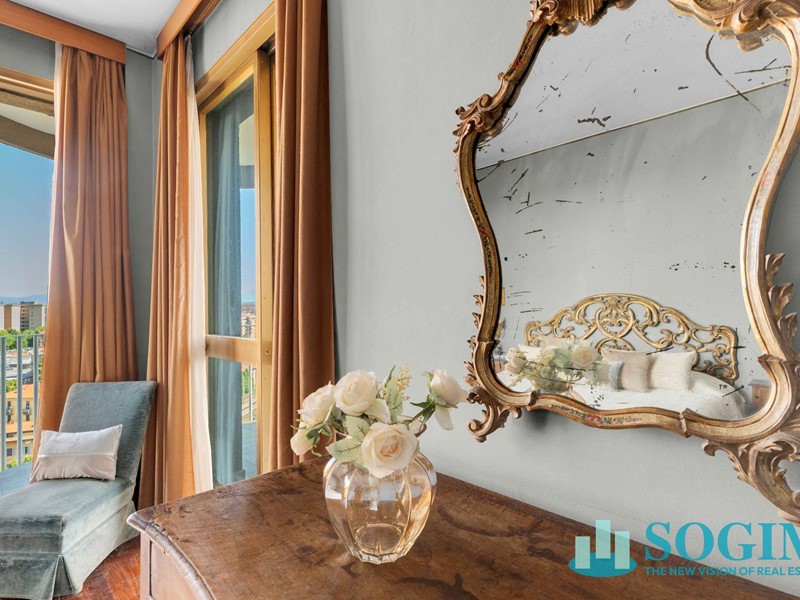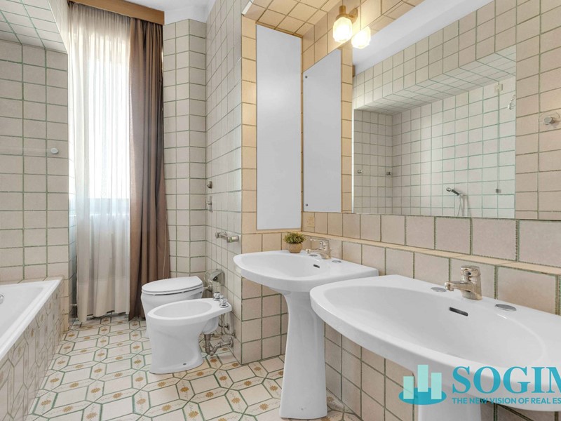 Caratteristiche dell'appartamento: infissi in alluminio - vetro singolo, pavimentazione in parquet nell'ingresso, salone, studio e camera matrimoniale, in ceramica negli altri locali; impianto di riscaldamento centralizzato e di condizionamento con split a parete.