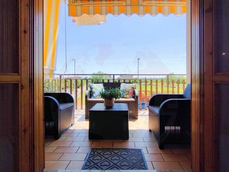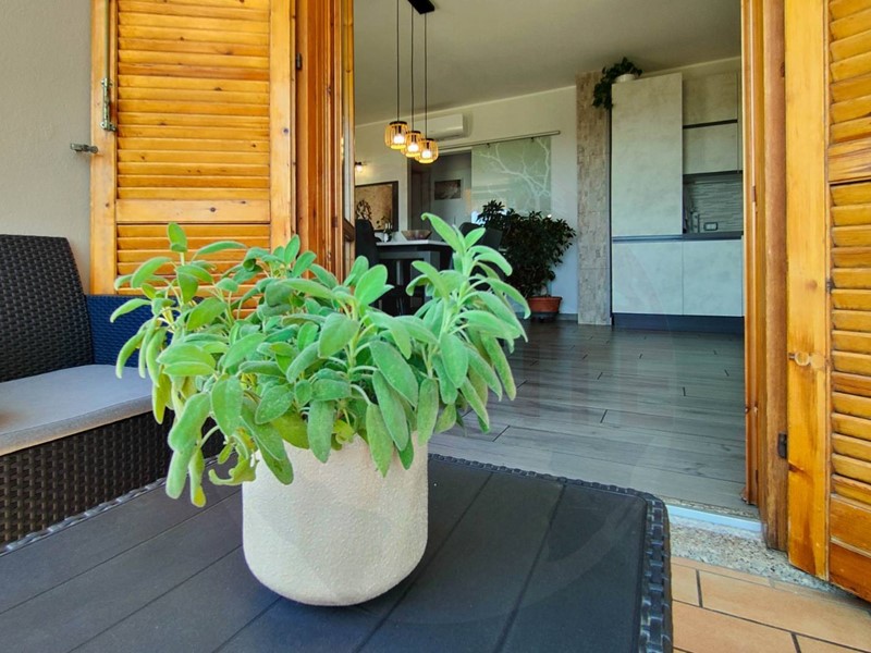 Lappartamento si apre su una zona giorno open-space con soggiorno e cucina a vista, luminosa e accogliente, con accesso diretto al terrazzo fronte strada. La zona notte comprende due camere da letto, di cui una matrimoniale e una cameretta con balcone, e un bagno finestrato con box doccia moderno. Anche il bagno affaccia sul giardino condominiale tramite un secondo balcone.