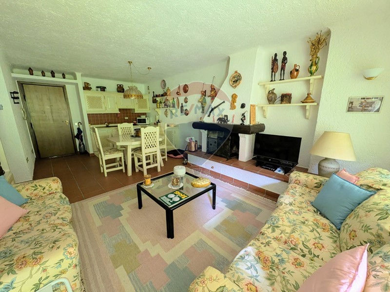Dalla porta d'ingresso si accede al living composto da cucina a vista, zona pasti, soggiorno con caminetto a legna e divano letto e per finire l'uscita sull'ampio terrazzo con ottima esposizione a sud.