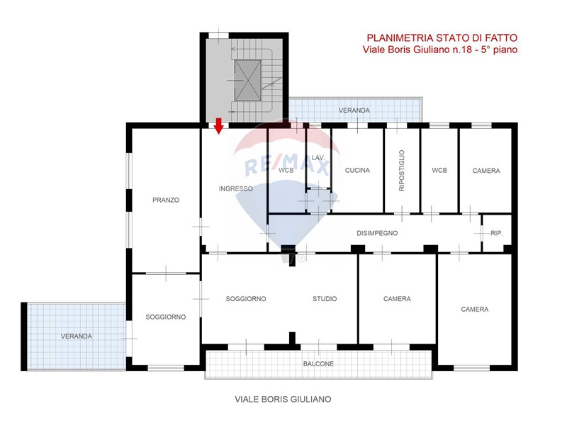 L'appartamento è composto da un grande ingresso, un salone triplo comunicante con altro salone doppio, comunque disimpegnati tra loro, cucina abitabile con veranda, due bagni, tre camere, due ripostigli. Completano l'appartamento un lungo balcone sul prospetto principale e un terrazzino di collegamento chiuso con delle vetrate, dove gli amanti del verde potranno realizzare un incantevole ed esclusivo giardino d'inverno. Tripla esposizione.